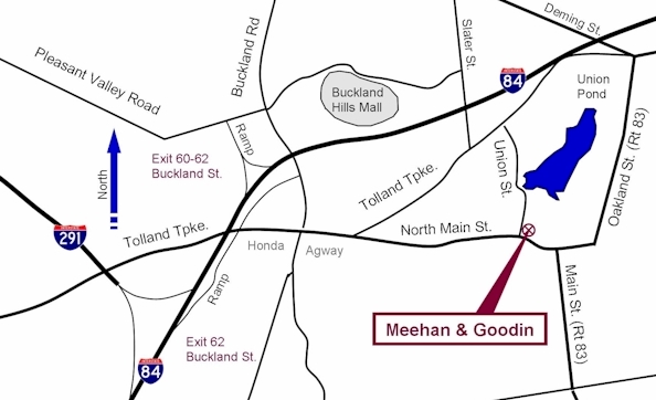 | Turn right and follow Buckland Road until the intersection with Tolland Turnpike